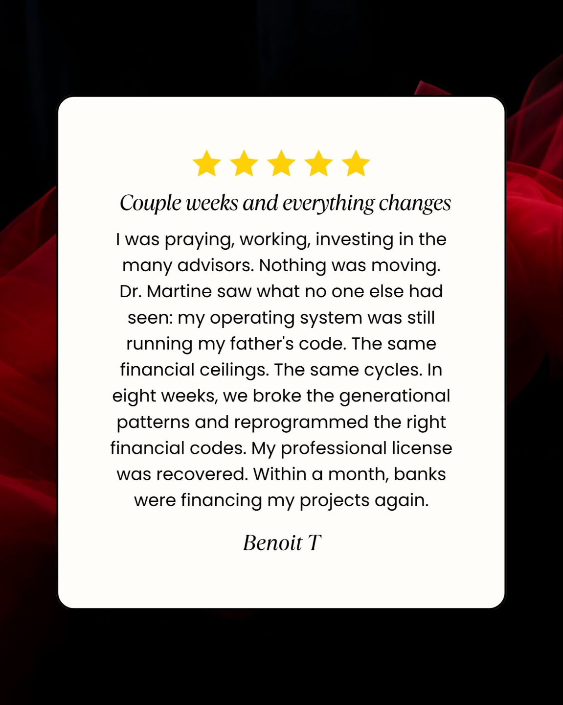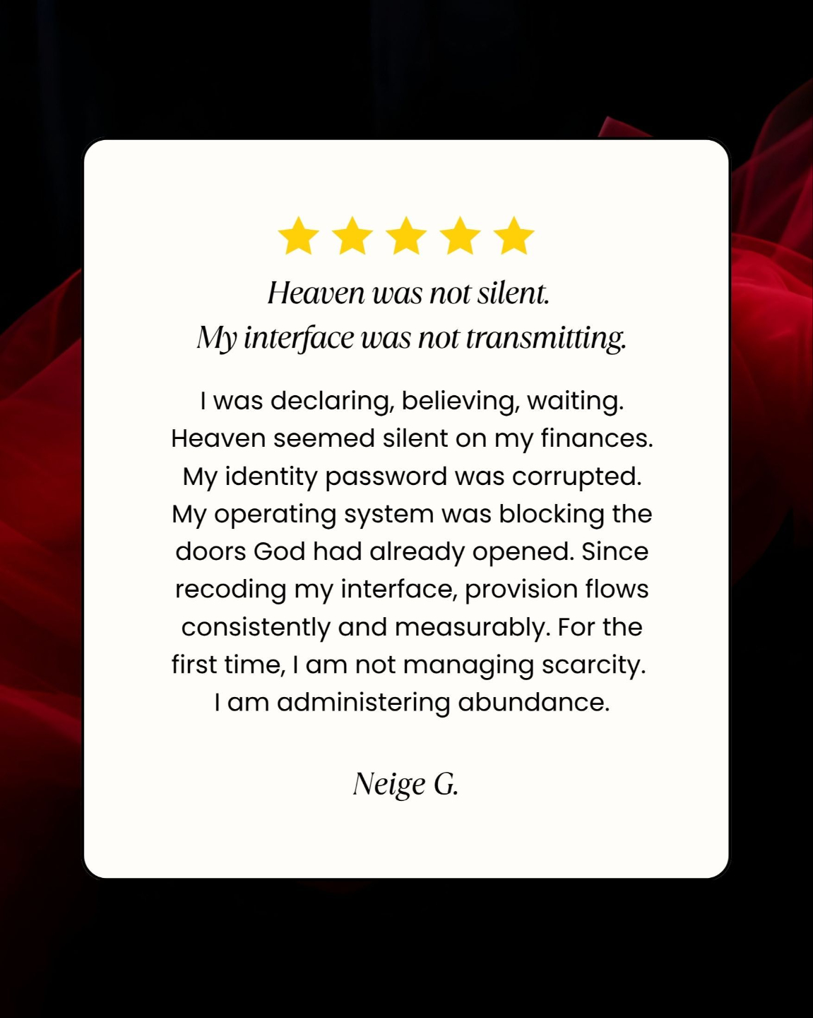 She rebuilt her own life from bankruptcy to abundance, restored a marriage everyone had given up on, and released 80 pounds in four months by recoding her interface rather than her strategy. Everything she teaches, she has lived.